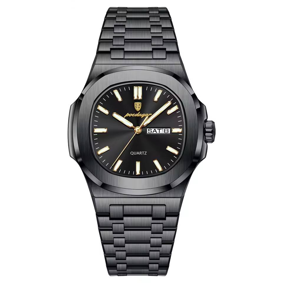 Case & Strap: IP-Plated Black Stainless Steel (Engineered for durability).