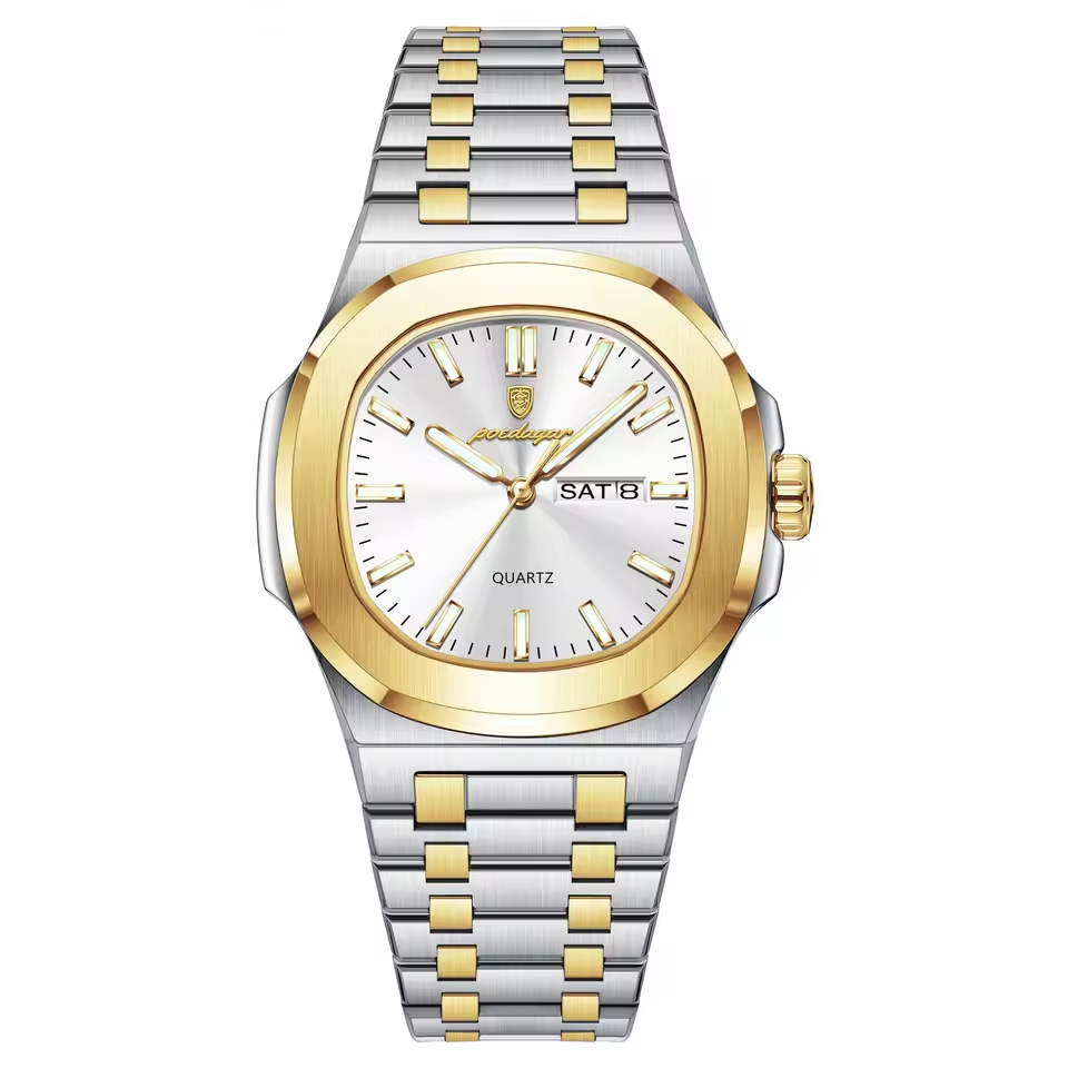 The Aesthetic: Classic Two-Tone (Silver & Gold). A symbol of "Old Money" leisure.